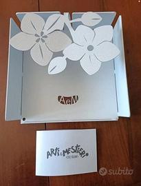 Portatovaglioli da cocktail in metallo bianco Fior di loto Arti&Mestieri con scatolo originale e certificato. Dimensioni: 17 x 17 x h12 cm. Bella idea regalo. Vendo insieme a un pacco di tovaglioli Ikea 14x14 cm sigillato. Può essere utilizzato anche come portagioie/anelli. Made in Italy. Spedizione velocissima. Prezzo non trattabile
