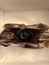 Portatovaglioli in vetro di Murano oro e nero