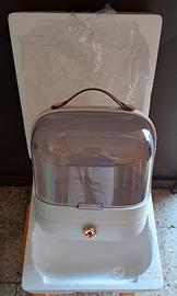 Come da Foto e Titolo Portatrucchi Scatola Portaoggetti Organizer Box Antipolvere per Trucchi Gioielli Oggetti. Colore Beige e con un Cassetto. Da Usare a Casa o anche da portare in Viaggio.
