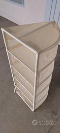 Vendo pratico portatutto smontabile in tela e tubi di acciaio. Utile per conservare scarpe o utensili ma anche per campeggio e giardinaggio composto da 5 ripiani robusti. Misure 42x45 altezza da terra 112 cm.
