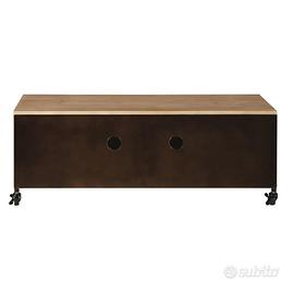 Facile da spostare grazie alle sue ruote, questo mobile TV in stile industriale leggermente patinato