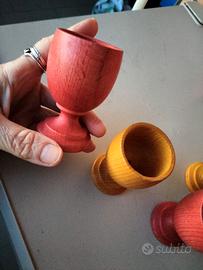 11 Portauova in legno rosso e giallo