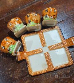 vintage anni 60 questo piccolo vassoio per 4 portauova in ceramica inglese della serie Cottage. Si assicura imballo professionale
