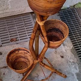 Vendo porta vasi vintage in bambù e rattan in ottimo stato. Gianni 3392767954