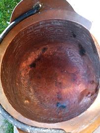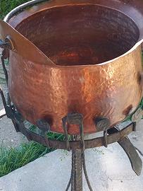 Il portavasi , costa di 2 pezzi : 1) un secchio di rame puro 100/100 , (si vede dal colore , non come altri , in rete ) , con qui trasportavano il latte , e quindi anche un valore. storico ( peso : 2,4 kg , diametro 29cm , altezza 32cm ) ,.e dal trespolo , realizzato interamente a mano , da un artigiano , negli anni ' 70 , curvato , saldato , costruito , e cesellato , un' opera d'arte in se' ( peso 5kg , altezza 75cm , diametro 31