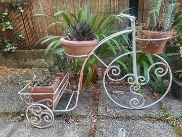 Bellissimo portavasi a forma di bicicletta, in metallo bianco. - Perfetto per decorare il giardino o il balcone. - Struttura in metallo resistente