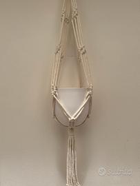 Portavaso appeso in macramè intrecciato a mano. (no vaso, no pianta) - lunghezza: 80cm - filato macramè 100% cotone - bianco per altre info contattami in privato, dai un occhiata al mio profilo per altri modelli :)