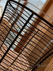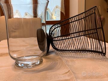 Particolare portavaso artigianale a rete con contenente un vaso in vetro. H. 28 cm