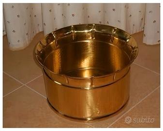 Grande portavaso nuovo in ottone di produzione artigianale per piante d'appartamento e giroscale; delizioso complemento d'arredo.