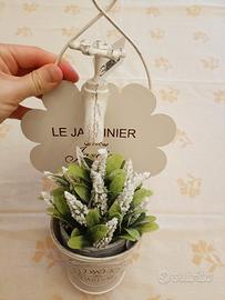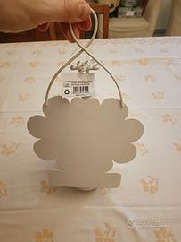 Il portavaso può essere anche appeso al muro ed è dotato di un finto rubinetto dell'acqua oltre che di un vasetto di una pianta finta.