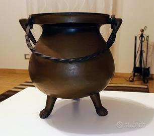 Porta vaso o bracere in bronzo con manico mobile, Dimensioni: Altezza: 30 cm Diametro: 30 cm bocca con diametro esterno 22 cm interno 16 cm in Bronzo Peso 1,8 kg circa
