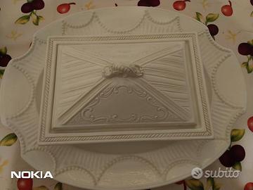 Vendo un portavivande in porcellana con relativo vassoio e coperchio, lavorazione artigianale maestri artigiani ditta italiana Elios, trattasi di un regalo mai utilizzato, nella sua confezione originale, quindi nuovo di negozio.