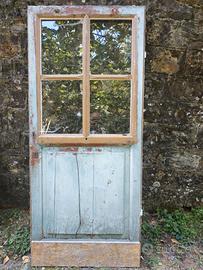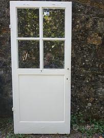 1 Porta di ingresso con parte superiore a vetro e scuretto in legno.
