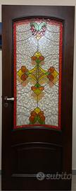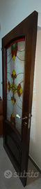 Porte in legno massello pari a nuovo, color noce scuro, compresa maniglia di ottone e ceramica, di cui una delle due decorata con vetro artigianale.