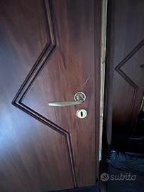 Vendo porte in legno scuro da interno , una scorrevole e altre battenti più porte adattabili ad un piccolo ripostiglio , le porte sono complete di maniglia smontate e impellicolate come in foto