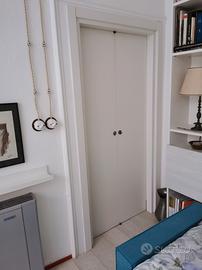 Per ristrutturazione vendo 2 porte in eccellente stato e perfettamente funzionanti. 1 rossa scorevole con vetro 1 bianca a libro (in regalo) La porta rossa è di ottima fattura e con misure standard.