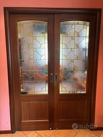 6 porte interne a battente in legno tinto noce con pannelli bugnati e finitura classica.dotate di maniglie in ottone satinato e cornici perimetrali sagomate.elementi di arredo eleganti e senza tempo,perfettamente integrati in contesti tradizionali o signorilità €200 CAD. inoltre disponibilità di 2 porte a scrigno scorrevoli con vetrate a €300