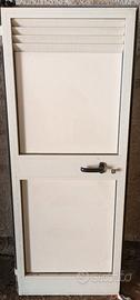 Vendo: i) n.2 porte di colore bianco (cm. 83 x 207,5) - le porte erano montate su un binario all'interno di una boiserie di legno (NON disponibile). NON sono Scrigno; ii) n.1 porta a libro in legno (prodotto di falegnameria) provvista di telaio e mostre (cm. 62 x 205) - la porta si apriva verso SX; iii) n.1 porta di alluminio anodizzato bianca (cm.72 x 176) - NO telaio - La porta era montata con apertura verso l'esterno.