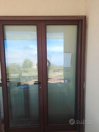 vendo 2 porte finestre in alluminio colore noce doppio vetro complete di serrature è chiavi misure altezza 2,40x1,75 larghezza come da foto prezzo € 800 trattabile per info Michele 3473523304