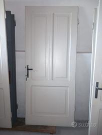 Porte interne in legno con specchiature cieche, provenienti da abitazione anni '30, varie misure, buone condizioni, no tarli, attualmente dipinte a smalto, 9 pezzi totali, di cui 6 hanno la maniglia con serratura funzionante e la chiave originale. Si vendono solo le porte, non sono stati recuperati i telai.