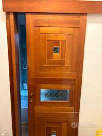 Vendo n. 5 porte con telai battenti più 1 porta scorrevole a muro interamente in legno ciliegio. Misure delle porte battenti camere da letto 95x220; misure porte battenti bagni 85x220; misura porta scorrevole 99x220. Il prezzo è riferito ad ogni singola porta