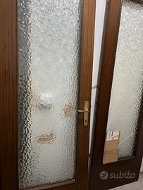 Regalo 2 porte in legno con vetro misura 210X70 cm. Una delle porte e' doppia (composta da due porte che si chiudono al centro per un totale di 420 cm di larghezza). L'altra e' una porta singola sempre 210X70 cm. Una delle porte ha il vetro danneggiato (vedi foto).