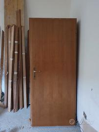 Vendesi 6 porte interne modello "Inglese" in vero legno massello di cui una in vetro, le misure sono le seguenti: altezza: 198 cm, larghezza: 81 cm, profondità: 5 cm.. Ogni porta interna è completa di cornici laterali e d'incastro. Vendesi anche scala interna completa in vero legno massello avente n°7 capotesta con altezza 108 cm, larghezza 9 cm, profondità 9cm e vari aste per il corrimano della scala avente seguenti misure altezza 85 cm, larghezza 7 cm e profondità 7 cm.