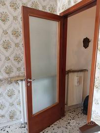 Elegante coppia di porte interne in legno massello, complete di pannelli in vetro satinato con finitura semitrasparente. Ideali per separare soggiorno, sala da pranzo o studio, donano luce e privacy agli ambienti. Le porte presentano: