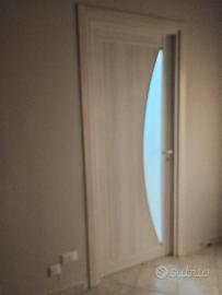 PORTA IN LEGNO (VERO LEGNO) LAMELLARE CON VETRO SATINATO. RIFINITURE IN LAMINATO LEGNO CON VENATURE DI VARIE TONALITA' E POSSIBILITA' DI SCELTA.