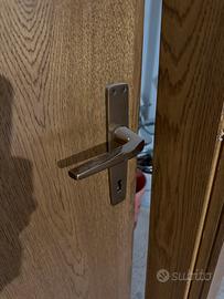 Vendo porte interne in laminato impiallacciato, color rovere complete di telaio e maniglie.  Disponibili 5 pz con pannello cieco di dimensioni 80 × 200. Disponibile 1 pz con pannello vetrato di dimensioni 80 x 200