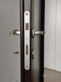 N. 6 Porte interne design moderno (5 battenti + 1 scorrevole) PERFETTE CONDIZIONI Vendo set completo di porte interne in legno color wengé, installate nel 2015 e in ottime condizioni. Si tratta di porte solide e di qualità, con un design moderno ma elegante, perfette per chi sta ristrutturando casa e vuole un risultato coerente e curato. Caratteristiche: . Finitura wengé con venatura a vista . Design moderno . Maniglie cromo satinato, stile minimal . Serrature AGB (qualità Made in Italy) . Guarnizione nera . Struttura robusta Dimensioni (tutte): . Larghezza luce: 80 cm . Altezza luce: 210 cm . Spessore muro: 11 cm . Coprifili: +1 cm per lato Vendita legata alla sostituzione con nuove porte, quindi disponibili solo in blocco completo. Prezzo del blocco porte trattabile, ma valuto offerte sensate no perditempo!