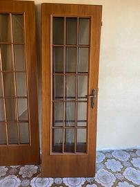 Vendo 9 porte legno,1 porta 3 ante con vetro inglese, 1 porta singola con vetro inglese, solo ritiro a mano a Mantova.