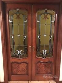 Porte legno massello,radica e vetro piombato