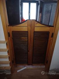 vendo porte come da foto, in legno massiccio, da salon tipo Far West o bar molto robuste comprensive di cerniere. misure larghezza cm 85 (Entrambe), alte cm 110.