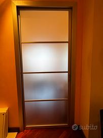 porta scorrevole a doppia anta con profili in alluminio e vetro satinato foto 1 490€ Foto due 250