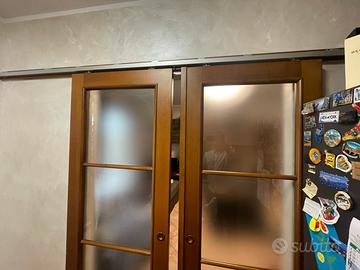 Vendo porte scorrevoli misure standard 83 larghezza altezza 211 . Legno ciliegio vetro smerigliato . Molto eleganti per dividere due ambienti .
