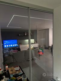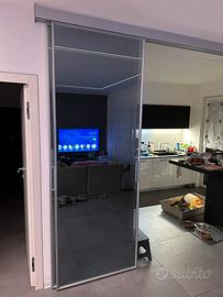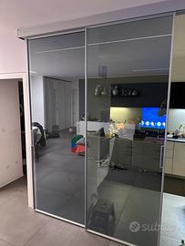 Vendo coppia di porte scorrevoli Rimadesio velario in vetro fumé con binario in alluminio satinato. Design elegante e minimal, perfette per separare ambienti con stile: cucina, soggiorno, studio o open space. 🔹 Dimensioni indicative del vano da coprire: •Larghezza: 1,80 m •Altezza: 2,60 m 🔹 Caratteristiche inducativa delle porte (marca Rimadesio): •Altezza: 2,47 m •Larghezza singola porta: 89,5 cm •Vetro temperato fumé di alta qualità •Telaio sottile in alluminio •Maniglie integrate 🔹 Binario superiore incluso: •Altezza: 10 cm •Lunghezza: 2,70 m •In alluminio satinato Le porte sono in ottime condizioni, usate pochissimo e già smontate. Ritiro a carico dell’acquirente – facile accesso al piano terra.