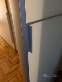 Vendo elegante coppia di porte scorrevoli in vetro satinato, ideali per separare ambienti con stile moderno e luminoso. Caratteristiche principali: - Larghezza totale binario: 270 cm - Altezza anta: 261 cm - Larghezza singola anta: circa 62 cm - Spessore anta: 4,5 cm - Materiale: vetro satinato con profili in alluminio - Sistema scorrevole superiore incluso - Maniglie integrate - Colore neutro, facilmente abbinabile Le porte sono in buone condizioni, perfettamente funzionanti. Ideali per soggiorno, cabina armadio, studio o divisione ambienti. Porte e binario sono già smontate pronte per il ritiro. Ritiro e trasporto a carico dell’acquirente. --- Parole chiave: porte scorrevoli, vetro satinato, scorrevole, divisorio ambiente, separa ambienti, cabina armadio, soggiorno moderno, ufficio, studio, open space, elegante, occasione