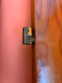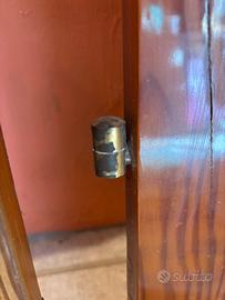 Molto robuste (pesano abbstanza) in legno, hanno tutte e due un lato in vetro e un lato in ferro battuto antiontrusione. Non presentano zone marcie causa pioggia o muffa hanno comunque dei piccoli difetti da usura sul legno. Non c’è la chiave. I cardini sono in buono stato.