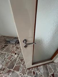 Vendo porte vintage come da foto con telaio …vetro intatto e maniglia funzionante anche se un po’ invecchiata …totale 5 porte Vendute anche singolarmente 20€ a porta …se vendute in blocco 80€ Caratteristiche legno tamburato e vetro zigrinato con profilature in legno in rilievo. Maniglie e serrature originali. Verniciate in bianco. Senza telaio. Dimensioni (in cm) dell'ingombro totale: larghezza 81, altezza 201, spessore 4.5. Periodo: anni Sessanta/Settanta. Condizioni: molto buone. No consegna, no spedizione. Contattare solo se veramente interessati.