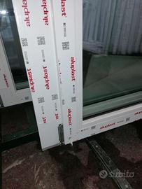 Portefinestre in pvc bianco interno ed esterno triplo vetro, ad 1 anta e 2 ante , profilo Aluplast telaio con aletta da 65 mm spessore telaio 70 mm anta da 77 mm, antaribalta, microventilazione, soglia inferiore, predisposte per cassonetto. Coefficente di trasmittanza temica 1 W/mqK .