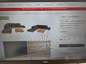 Vendo salotto da giardino (divano 6 posti e tavolino) Porto Rico Maisons du Monde in acacia massiccia e tela grigio antracite. Retail € 1.599. Il divano è in perfette condizioni (appena rivestito con tela nuova), il legno del tavolino è un po rovinato.