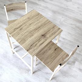MATERIALE: Piani rivestiti di PVC colore legno rovere sbiancato spessore 1,5 cm. Struttura tubolare 2x2 e 2,5x2,5 cm in metallo colore beige. Piedini in plastica. Utilizzo Domestico. Sono da interno. Portata tavolo 40 kg. Portata sgabello 100 kg.