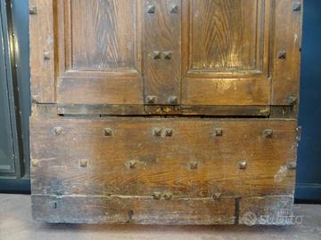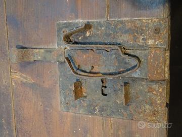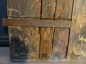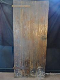 Portoncino ad un battente con bozze completo di cerniere e serratura (senza chiave),antico. Misura: largh.84 cm h.2 m spessore 8 cm
