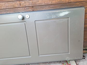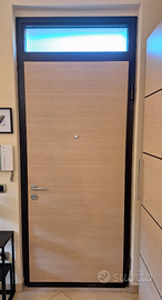 vendo portoncino d'ingresso blindato per sostituzione. Dimensioni 90 x 240 cm compreso sopraluce in vetro antisfondamento. Telaio metallico sp.3 mm con tamponamento in legno interno ed esterno Nella zona bassa è scolorita come in foto perché graffiata dal cane, il legno è comunque integro. Ritiro a carico dell'acquirente.