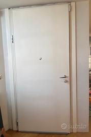 Portone blindato nelle misure 100 cm x 245 cm di altezza il foro x la cassa dev essere 115 cm x 250 cm. colore bianco internamente e verde a doghe verticali esternamente fabbricato da Forlegno con blindatura e serratura antintrusione completo di cassa in acciaio serratura nuova con 4 chiavi. La parte esterna a doghe di alluminio puó essere verniciata del colore che si vuole vero affare visto il costo di oltre 3500€ nuovo. Piccolo margine di trattativa con seriamente interessati.