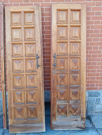 portoncino d'ingresso in legno massello. La parte interna in buone condizioni la parte esterna un po' da rivedere essendo stata esposta alle intemperie. Misure esterne telaio 130cm x225cm, porte da 60cm, interno telaio 120cmx220cm. Ritiro a carico dell'acquirente