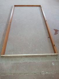 misura foro cm 225 per 121,5. parte dx con possibilità di bloccaggio di cm 33. apertura si vede dalle foto. con una guarnizione, il legno credo sia larice. trasporto carico destinatario.