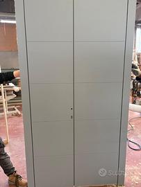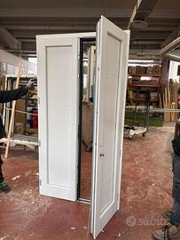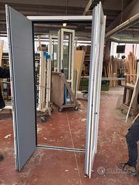Portoncino di ingresso a due ante in legno alluminio Bicolore: interno (Legno): Bianco RAL 9010 - esterno (Alluminio): Grigio RAL 7001
