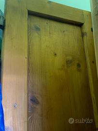 Portoncino in legno massello da esterno a battuta due ante.misura totale 109 x 230, nella parte esterna verniciato di verde.